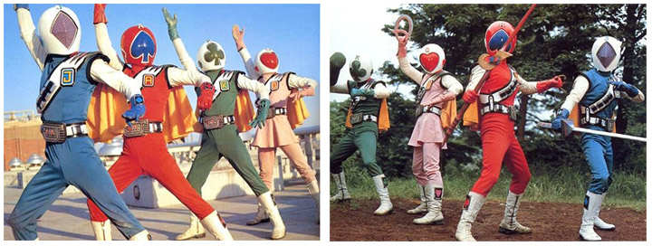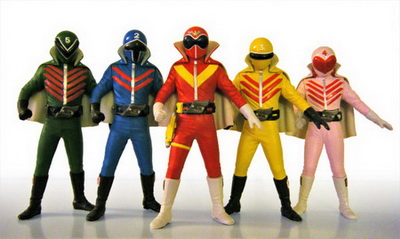 戰隊型的角色人物,大概是日本卡通或特攝的一種基本款吧!