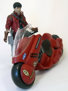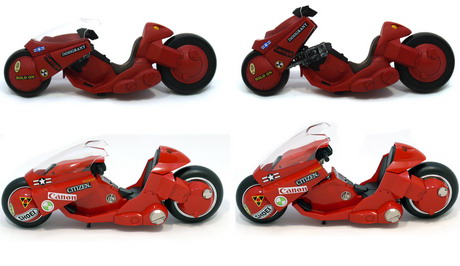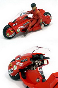 新入荷:麥法蘭系列的金田摩托車 材質:PVC 入荷日期:5/Mar/2008 入荷價格:NT1,200 (綑綁那隻超娘的金田一起賣) 話說某天週間下午,採購三人團來到了和平西路上的亂太郎。遠遠停車處就看到店面前的玻璃櫥窗站著滿滿的玩具。三人抱著朝聖般的虔誠心情在櫥窗前站了好久,不發一語。這樣的排場,唔的頂。豆腐人稍微算了一下光最上排的士兵娃娃,加一加也有個六七十。Dathvader像是中邪般的盯住超合金魂那個區塊,”在玩具的茫茫大海中,我們只是浮游生物”Dathvader曾感慨的說過。這個時刻應該更有感觸吧。 由於已經有超娘的金田,花1200等於只為了金田機車。掙扎了很久,加上那兩人的火上加油,最後還是給他橋下去。回家拆開後,很慶幸我的決定是對的。 雖然是PVC材質,它該有的質感都有做出來喔。而且駕駛把手也是可以整個抬起,內部的金屬細節也很努力的表達出來了(參考圖面-上方是新入荷的PVC金田機車,下方是超合金金田機車)。 我記得2007年去日本出差,特地趁空檔跑去秋葉原的8號店。無意間發現超大台的金田摩托車,印象中車身也有80公分這麼長。PVC材質,售價好像是 羊115,000,也算是奇觀啦,看看就好。 資訊連結: 芸能山城組 參考資料: "AKIRA Production Notes", AKIRA DVD Special Edition.