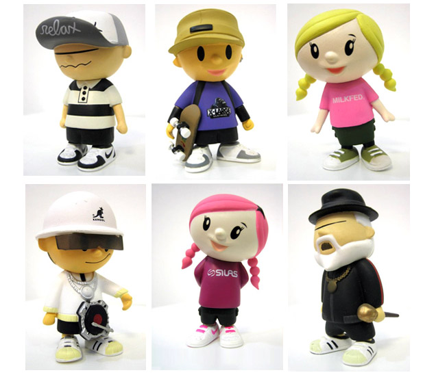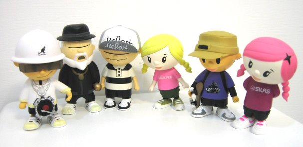 2002年,那時的我還是個玩具菜鳥,只因為拜讀了幾位前輩的日本玩具血拼心得,就迫不及待地飛到了東京,想一圓玩具夢。 沒想到因為資料收集不全,加上五花八門目不暇給的東京街頭實在吸引人,充滿滾燙熱血的玩具魂就這樣給澆熄了,換來 的是一件件T恤襯衫牛仔褲,和塞滿拉麵壽司蛋糕可麗餅的胃,唯一能跟玩具扯得上關係的,大概只有那些從新鮮好玩有趣又刺激的夾娃娃機夾到的娃娃吧..... 某天,豆腐婆好不容易拉著我脫離了池袋的夾娃娃機地獄,走到附近的溫蒂漢堡(好懷念呀~)想買杯飲料冷靜冷靜時,突然發現旁邊竟然有家玩具店!!!剎那間被澆熄的滾燙熱血的玩具魂終於甦醒了過來(飆淚),這趟東京玩具初體驗總算沒繳白卷。RELAX BOYZ系列就是在那家店裡買的...嚴格說,應該是扭的。 這套玩具是由日本潮流雜誌「RELAX」跟「TGB」設計團隊合作生產,名字叫「RELAX BOYZ」,是一群住在RELAX TOWN裡的各個角色,以街頭文化為背景,造型則是走簡單可愛路線。上市則是以扭蛋機的方式販售。 所謂扭蛋,維基百科的解釋如下:轉蛋或稱扭蛋,是對於被包裝起來(通常但不是全部都會)放入販賣機裡販售的玩具等物品的形式。此一概念最早源自美國,大約在1920年起前就有了。剛開始是放在雜貨舖門口,給小朋友投著好玩的,裡面多是口香糖、零食,或是一些小玩具,外面並沒有塑膠蛋殼包裝。後來這種販賣方式傳到日本,遂在日本發揚光大,成了世界上扭蛋最大的供應商。一個轉蛋的典型內容是一個可以打開成兩半的塑膠蛋殼,在裡面裝有玩具和說明書。 轉蛋玩具通常是根據一些流行於日本漫畫、電玩、動畫 裡面的角色而製成。轉蛋會放在轉蛋機裡面,將錢投入 機器中後,用手去旋轉開關,一個轉蛋就會掉下來。 大部分轉蛋會出成一個系列,每個系列通常會有六到十 幾種玩具不等。當你去旋轉轉蛋機時,你無法決定掉下 來的玩具是否是你最想要的,而這也是許多人覺得玩轉 蛋的樂趣之一(亦是許多人掉入深淵的開端)。 掉入深淵的開端....非常貼切又命中要害的論述呀! 扭一次要500日幣,我扭了七次只拿到三個不同角色,其他都是重複的。 原本想一鼓作氣拼下去,還好mandy充滿殺氣的眼神阻止了我.... 當時我扭的是第一代的玩具,高約七公分,塑膠材質,後來我去大 阪時發現又出了第二代,依然是放在扭蛋機裡,所以我依然是拼了命的扭..... 這兩代角色幾乎相同,只有在服裝表現上做出變化, 全是以街頭潮流的品牌與配件做搭配,如XLARGE, MILKFED、KANGOL、NIKE等...這套玩具工相當的細,塗裝也很用心,滑板的細節都有注意到更是令我佩服,由於有潮流品牌的露出,配色方面自然專業,雖然兩代各只有得到三隻,也曾想要全部收藏,不過,有時買玩具也要講時機,看到的時候萬一猶豫沒買,之後想買就很困難囉。