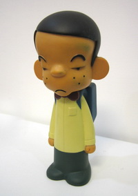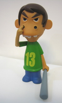 剛開始對收集玩具有興趣的那個時候,只是默默地埋著頭看到喜歡的就買,於是乎,常常會因為不瞭解所買的玩具的背景而有漏買和有眼不識泰山的遺憾(嘆~)。 當年為了積極開拓年輕人的市場,玩具反斗城特別與香港人氣公仔設計師蘇勳合作,推出專為玩具反斗城設計的七小福公仔,說是專門,其實只是將之前蘇勳的seven kids顏色重新設計,只是背面印上了玩具反斗城的logo,有一定的收藏價值。 玩具反斗城版七小福公仔每套共有七款,全球限量500套,台灣地區分配到100套,但是,當年玩具的風氣並沒多盛行,知道蘇勳大名的更是少之又少,所以當我看到這套玩具時,數量還有很多,殘念的是,我那時也不知道蘇勳是哪位,只是覺得這幾個玩具造型很特別,因為價錢不算便宜(每個599元,塑膠的,小小的,玩具菜鳥當然會嫌貴),就只挑了兩個比較中意的,誰知不久之後總算知道蘇勳是誰時,為時已晚。 這套七小福公仔設計源自於ESTATE系列,是以李璨琛(Sam Lee)為發想的,因為他與SAM LEE都是在屋村(香港話,就是眷村啦)長大,希望能為許多人記憶中的眷村留下玩味紀念,因此產生了這一批設計。設計方向完全是從草根走入潮流的「屋村文化」 公仔,其中不乏生活中常見的小人物:如苦讀的中學生、搬運工人等,這些人的穿著打扮與肢體語言又對應了時下流行的街頭文化,可見蘇勳的觀察力。七小福就是這個「屋村文化」的第三代。會挑選這兩個,是有原因的,當我看到這個背著書包滿臉無奈壓抑的模樣,就會想到當年也是所謂的「國四英雄」的我,那時真是無奈跟壓抑呀,而另外這個一手拿球棒一手挖著鼻孔的暴牙男,那個賤賤的表情,像極了我的一個高中同學,不買下來做個紀念都不行呀! 蘇勳的偶像是李小龍(也是靠著設計李小龍公仔而一炮成名的),加上他很喜歡看電影,所以他著名的可動人偶設計對象都是電影人物,表情生動,服裝更是考究,而且作品都是限量發行,價格不婓,想要擁有他的玩具,不是很多金就得狠得下心! 相關連結:蘇勳官網 / 李璨琛個人blog